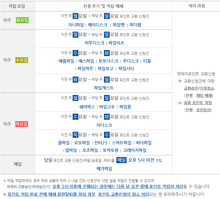 포인트 교환신청 서비스 이용 시 유의사항